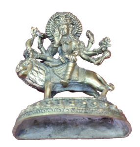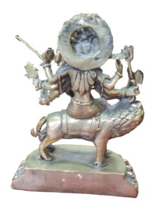 A multidimensional goddess, she possesses various divine facets, names and personas. The destroyer of evil with ten mighty arms, each carrying its own weapon, she is Shakti or Mahishasuramardini.