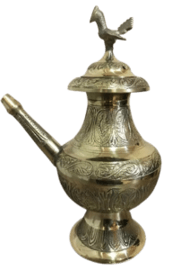 A typical Karuwa is a Newari vessel used to store, drink, and serve water. Palpa, Tansen of Nepal is famous for producing this metal craft which is especially used in daily households of the Newar Community. It is one of the traditional water bottles and serves a great purpose to Nepali's core heritage and culture. These vessels are either made of honey wax, Palpali bronze, or brass and have a moderate to exquisite carvings on them.