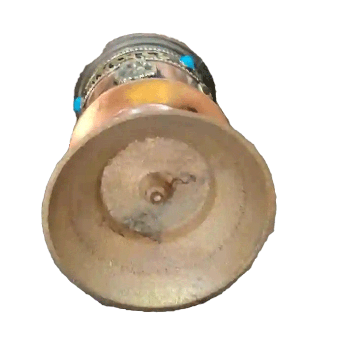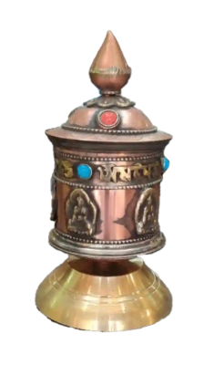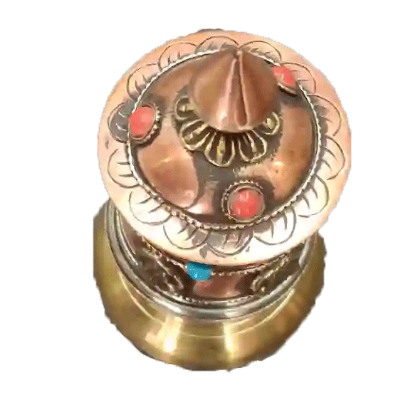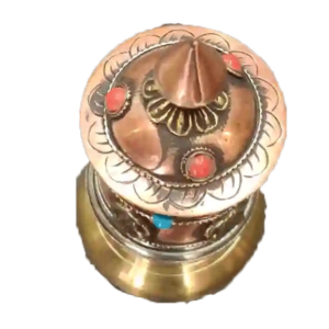 The coral decorated stand with mane is equipped with Om mane padme hum or other Buddhist mantra printed paper roll inside. Since the product is entirely handmade.